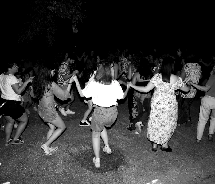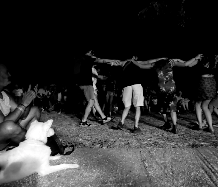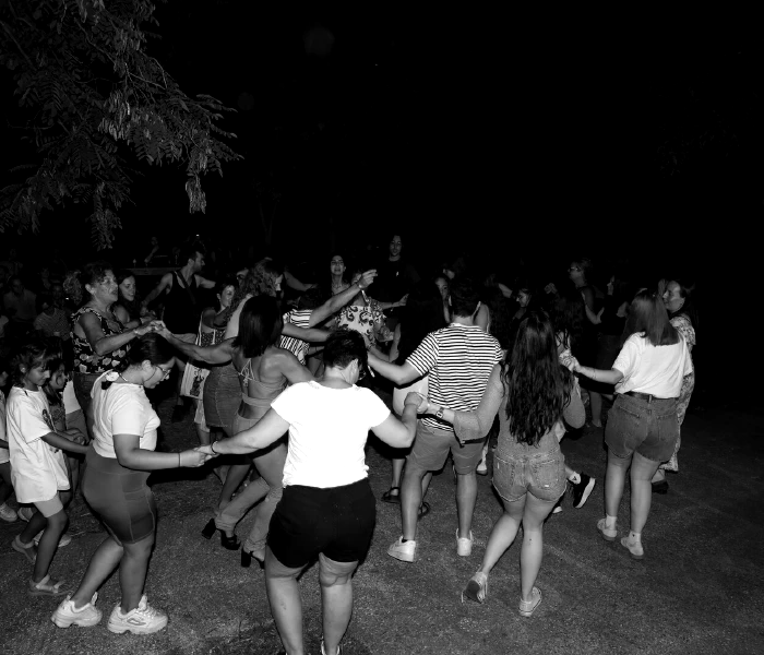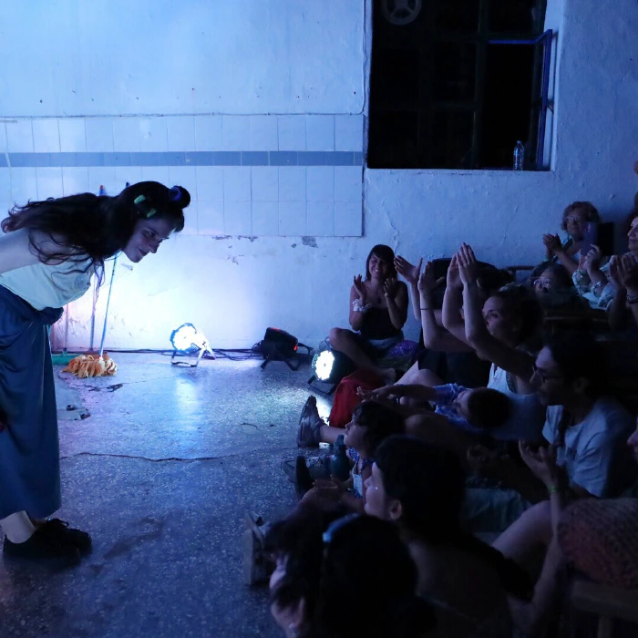 Παλιό Δημοτικό Σχολείο ΘέρμωνΜια τελετουργία για τη γυναικεία αυτοδιάθεση με φόντο πυρωμένα σίδερα, τσιγάρα και καροτσάκια λαϊκής, εμπνευσμένη από τους πυρήνες αντίστασης του καταπιεσμένου γυναικείου σώματος και τη διαδρομή του προς την πολυπόθητη απελευθέρωση. Μια ματιά στις προγόνισσές μας, τις γιαγιάδες, τις μανάδες και σε όλες οι γυναίκες που μεγάλωσαν γυναίκες, μέσα από την κληρονομιά των σωμάτων τους που κουβαλούν αγάπη, θέληση για ζωή, κούραση, καψίματα από σίδερα, μυρωδιές από κρέμες χεριών και χλωρίνες και ανάγκη για λυτρωτικούς χορούς.