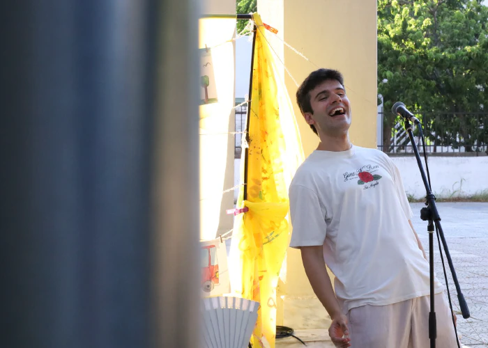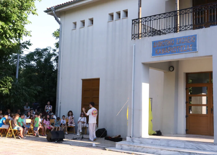 Παλιό Δημοτικό Σχολείο ΘέρμωνΘεατρικό εργαστήρι ενηλίκων με τον σκηνοθέτη της παράστασης “Video Club Φαντασία” Νικόλα Λαμπάκη.